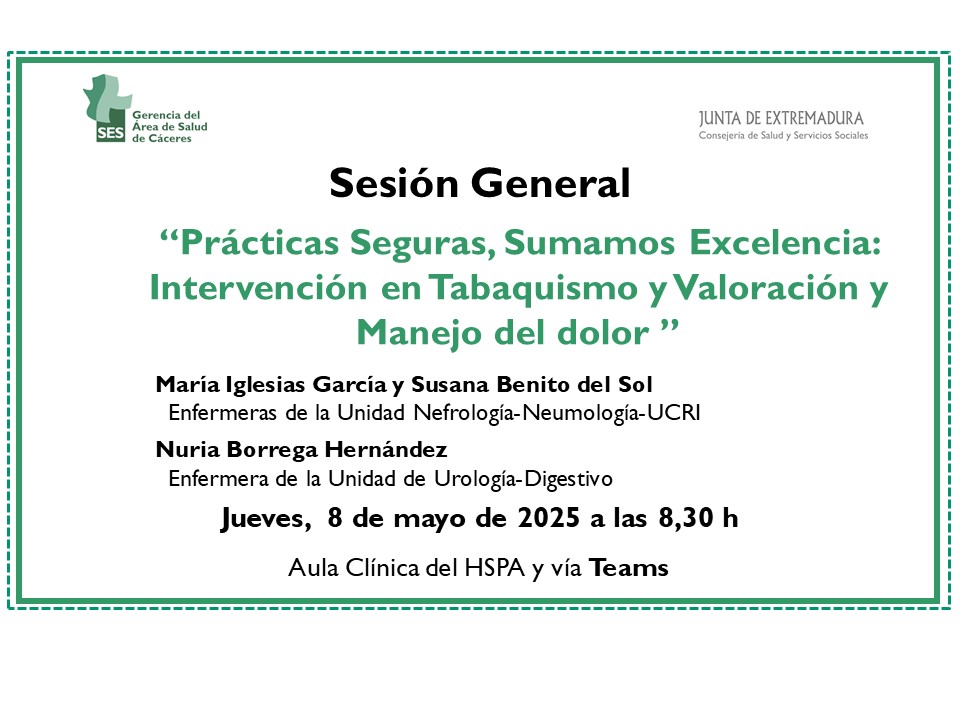 - Lugar: Aula Clínica del HSPA y vía Teams para todos los centros de salud y hospitalarios del área de salud.