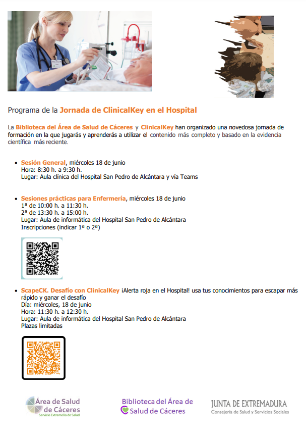 Tipo de actividad: Sesión ExtraordinariaPonente: Patricia Zeballos - Formadora Clinical KeyModerador/organizador: Servicio Biblioteca CáceresServicio: Biblioteca de CáceresLugar: Aula Clínica del Hospital San Pedro de Alcántara - TEAMSHora: 08:30